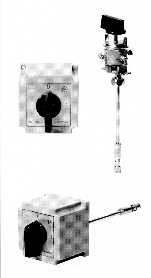 ESTI-Übertemperaturschutz ES, EST 15/1 U Paketschalter mit erschütterungsfesten Messerkontakten und einer Schaltleistung von 16 A bei 440 V~.